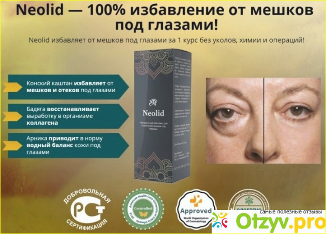 Комплекс "Неолид" позволяет в кратчайшие сроки избавиться от мешков под глазами и вернуть лицу былую красоту и свежесть.