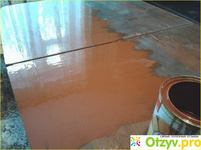 Первая проба использования краскиБуквально в тот же день как я принесла покупку домой, муж не удержался и решил покрасить стол. Стол и в самом деле выглядел просто кошмарно. Но это и не удивительно, учитывая его возраст.
