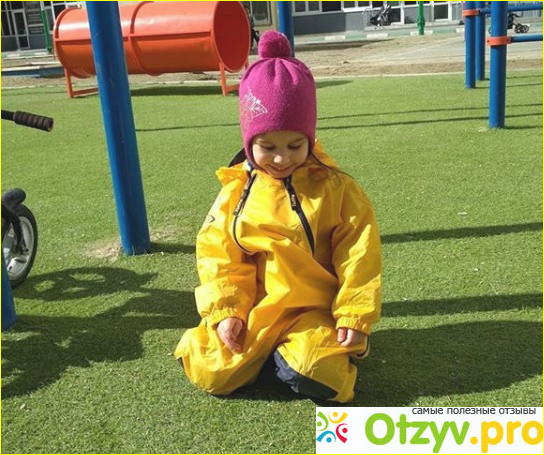 Комбинезоном довольны, дочку видно через всю площадку и не нужно переживать о мокрых коленках.