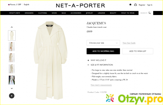 Net-a-porter постоянно обновляет свои коллекции. На данном модном сайте вы найдете фирменные вещи, включая аксессуары. Доставка осуществляется по всему миру, это огромный плюс.Практически каждый сможет себе позволить заграничные брендовые вещи. Ассортимент здесь отличный, придется многим по душе. Net-a-porter гарантирует, что вся одежда является оригинальной, а не китайской подделкой. Доставка осуществляется быстро, в моем случае это оказалось именно так. Если вещь не подошла, вы даже можете оформить возврат. На сайте указан телефон горячей линии, по которому вы сможете легко дозвониться до компании в любое время суток.