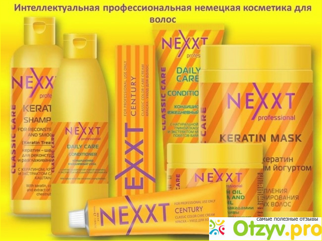 Производитель ТМ NEXXT professional - Helm GmbH, Hamburg, Germany - большой производственный холдинг с 60 летним опытом производства профессиональной косметики. Основное направление – контрактное производство для транснациональных немецких марок. Производитель имеет собственную лабораторию с штатом химиков-разработчиков и колористов , чья задача – разработка инновационных продуктов ухода за волосами – нас ждут уникальные новинки и свежие проекты. Обычно все средства этого бренда, считаются профессиональными, поэтому стоимость на них бюджетной не будет,( но доступная как по мне) но заранее Вас хочу предупредить, эта косметика достойная своей стоимости. Ассортимент этой косметики достаточно обширный, можно найти для себя шампунь, кондиционер, стайлер, массаж для волос, макси, что только душа пожелает. Особенность у этой косметики одна, это конечно же высокое качество и максимально приближенный к натуральному состав. Вместе качество и состав, делают невероятные вещи с волосами.