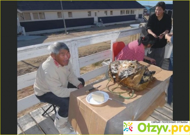 Среди народов Севера распространены такие лакомства, как копальхен (это ферментированное мясо, на которое кладут пресс), кивиак (это тушки птиц, которые разложились от бактерий; тушки хранят в тюленьей шкуре до двух лет). Я очень надеюсь, что вы не едите во время чтения моего отзыва.