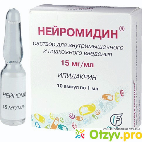 Действие нейромидина основано на ингибировании холинэстеразы с одной стороны и на блокировке мембранных калийпроводящих каналов с другой. Таким образом в пресинаптическую щель поступает меньшее количество калия а кальция наоборот начинает поступать больше. А кальций в повышенном количестве способен стимулировать выбрасывание медиаторов и облегчение их прохождения.