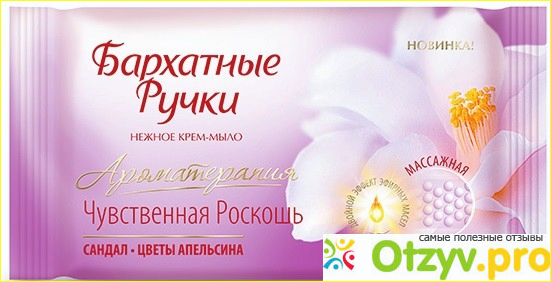 Мыло я стараюсь всегда брать с кремом, чтобы было смягчающие . На это мыло Я обратила внимание, Бархатные ручки так как сам крем этой линии Мне очень нравится, ещё плюс в том что, цветы апельсина очень хорошо заживляют раны.