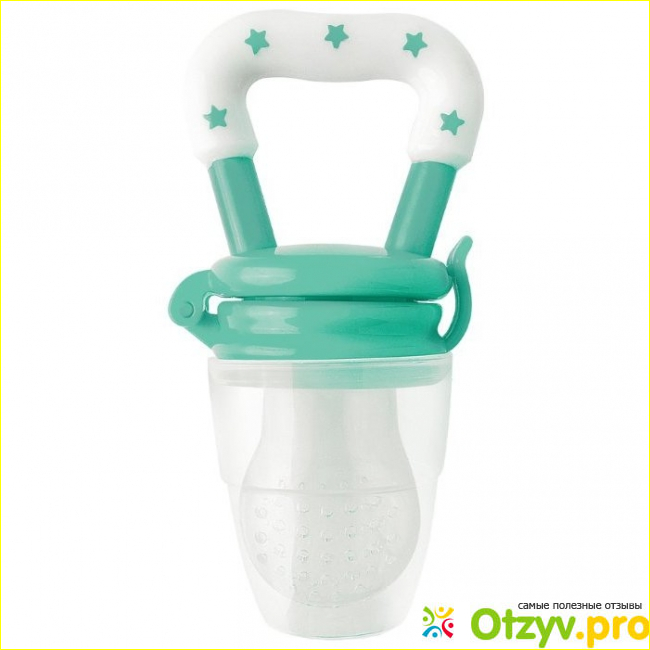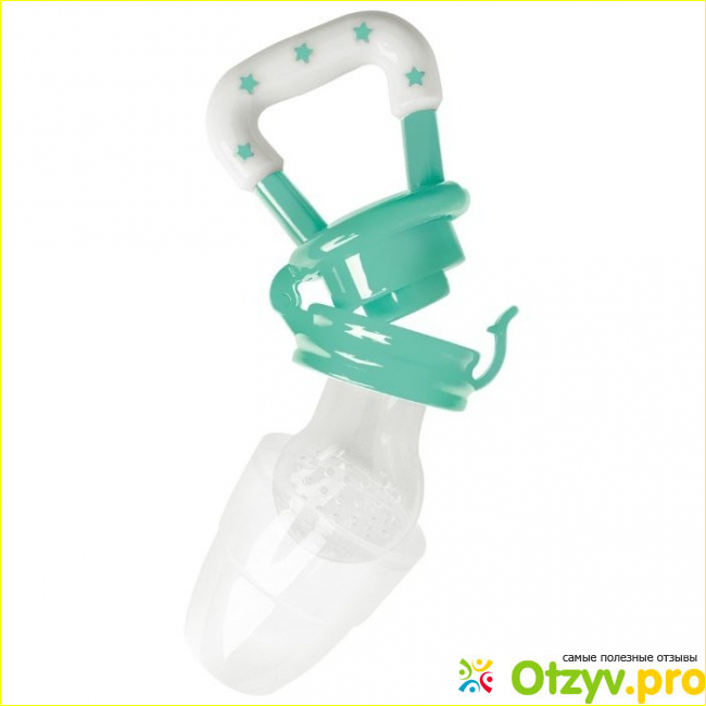 На фото прекрасно видно, как он выглядит. Это сеточка, прикрепленная к ручке. Используется, грубо говоря, для кормления малыша. Каким же образом? В сеточку можно поместить кусочек очищенного яблока, или что вы выберете. Ребенок возьмет за ручку и будет кушать фрукт через сеточку.
