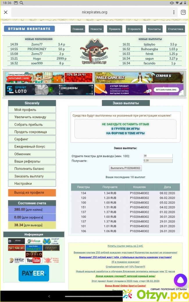 Есть ежедневный бонус, который идёт на счёт для покупок. Кстати, счёт для покупок пополняется либо ежедневным бонусом, либо за счёт внесённых средств. Так как всё серебро, заработанное пиратами, идёт на вывод в 100% размере. Серфинг-средства в полном объеме тоже уходят на вывод.