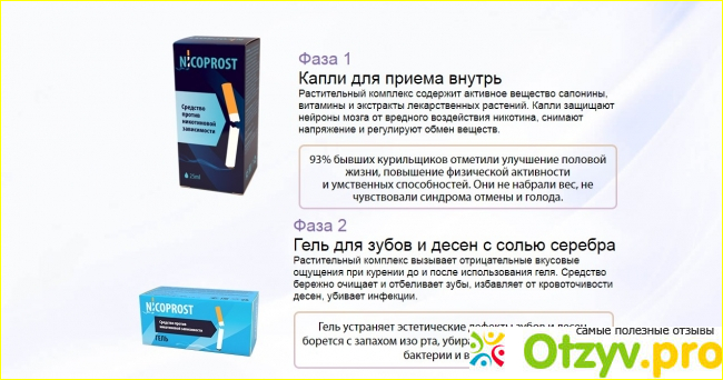 Производитель средства Никопрост обещает, что данные капли отлично защищают головной мозг от вредного воздействия никотина. А все из-за того, что в этом средстве есть особые вещества, которые называются сапониты. Эти вещества имеют природное происхождение и именно они якобы помогают бросить курить. Но на самом деле нет ни каких научных статей, которые бы подтверждали данные момент. Поэтому покупателю остается только верить на слово производителю.