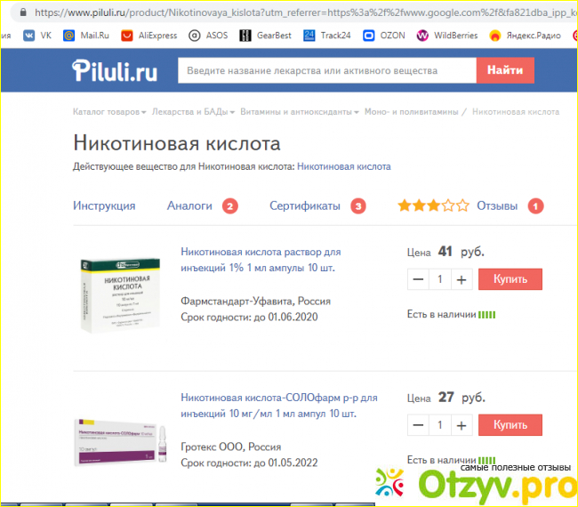 Приобрести героя отзыва достаточно легко, практически в каждой аптеке вы найдете ампулы для уколов, а также таблетки, которые так и называются "никотиновая кислота". Выдаются они без рецепта и стоят достаточно дешево. В среднем на такую покупку вы потратите 100-150 рублей.