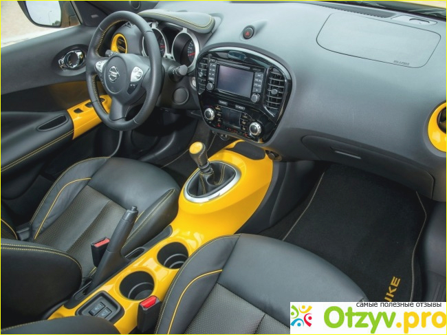 В Nissan Juke необычно все. Он оригинальный и снаружи и внутри, эта машина точно не останется неприметна на дороге. В салоне множество нестандартных решений. Очень удобные спортивные кресла, глянцевая центральная консоль. Вместимость багажника до 354 л. Два чемодана и спортивную сумку разместит легко. Посадка за рулем удобная. Даже несмотря на то что руль регулируется только по вылету, на поиски оптимального положения тратить много времени не надо. На заднем сидении места предостаточно. Хватит места даже рослому мужчине и он не будет упираться коленями в спинки передних кресел. А в потолок может и будет, так как это особенность крыши у машины. На центральной консоли разместился 5,8 - дюймовый цветной сенсорный дисплей фирменной мультимедийной системы с навигацией Nissan Connect. Это настоящий медиацентр, на котором можно не только прослушивать музыку, но и синхронизовать со смартфоном и пользоваться любимыми приложениями, всегда быть на связи в социальных сетях, прокладывать оптимальные маршруты.