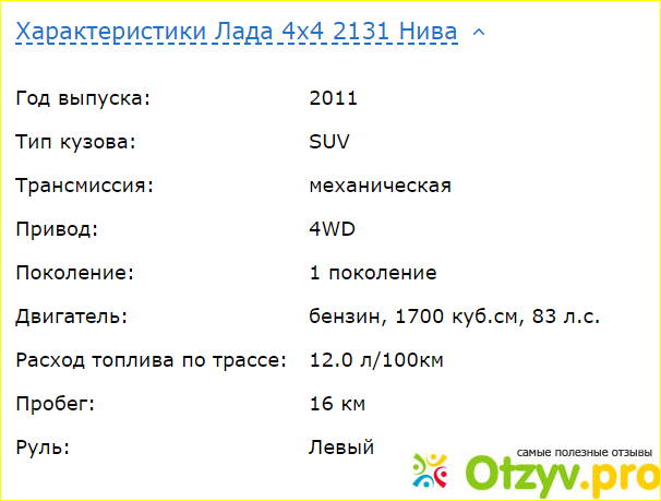 Задачи, которые я перед собой ставил перед покупкой автомобиля, Нива 2131 выполнила, с достоинством и без больших проблем. Это полный привод, хорошая проходимость, неприхотливость. Дорожный просвет 220 мм. позволяет преодолевать препятствия в виде камней и рытвин. Пониженная передача позволяет преодолевать крутые горки. Запчасти для ремонта не дорогие и не в дефиците. Бездорожье преодолевает с оценкой пять. В этом плане даст фору любой иномарке. На дороге держит себя хорошо. Дифференциал позволяет вылезать из грязи или глубокого сугроба.
