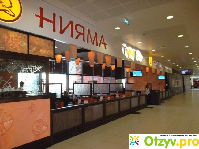 Ну ладно, стоит закончить распевать оды японской кухне. Думаю все, кто зашел сюда почитать этот отзыв, и сами прекрасно все это знают и любят японскую кухню, как люблю ее я. Речь в этом отзыве пойдет о сети японских ресторанов Нияма. Как-то раз мы гуляли всей семьей (я, муж и двое наших деток: старший сын и младшая доченька). Мы решили зайти, пройтись по торговому центру, а заодно найти какое-нибудь кафе, чтобы хорошенько перекусить перед кинотеатром. И вот, когда мы нашлифудкортна втором этаже, я не смогла устоять и потащила всю свою родню в небольшой, очень с виду уютный ресторанчик под названиемНияма. Я никогда раньше не брала суши в этой сети, но сейчас очень сильно захотелось попробовать. Сам интерьер — стандартный для японских ресторанов, мебель — деревянная, минимализм. На одной из стен висел огромный раскрытый веер, на противоположной — настоящая самурайкская катана). Порции, конечно, оказались очень дорогими, это факт. На зато и очень большими. Сами сушки тоже немаленьких размеров, так сразу в рот и не пропихнешь). Мы с мужем заказали Филадельфию. Дети взяли Сяке Маки и Нью- Йорк. Кроме того, заказали пару свежих салатов, молочные коктейли для детей, зеленый чай для меня и пиво для мужа. На десерт — чиз-кейк. И еда, и обслуживание — все было на высшем уровне. Официантка у нас была азиатской внешности, я даже поинтересовалась — наполовину китаянка). За еду мы расплатился кредитной карточкой. Всего стоимость обеда вышла тысяча триста рублей с небольшим. Впечатления от вечера остались самые положительные.
