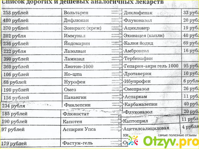 Когда вам в аптеке говорят, что дротаверина нет, это скорее маркетинговый ход, так как это дешевый аналог, который даже не вдвое дешевле, а втрое. А потому фармацевтам невыгодно его продавать, за его продажу им не доплачивают. Вот у меня уже пару раз был такой случай - хочу купить троксерутин, а мне суют троксевазин, мол случайно. Или с эреспалом ситуация - он дороже инспирона вдвое, я говорю - дайте инспирон, а мне опять же суют эреспал. Почему? Итак понятно, так что не давайте себя обмануть и не переплачивайте за название торговой марки. А лучше всего приглянитесь вот к этой табличке - я выбрала самое первое, что попало под руку, тут вы найдете аналоги, которые дешевле в два и более раз разрекламиированных перпаратов - панадол и парацетамол, ношпа и дротаверин, и так далее.