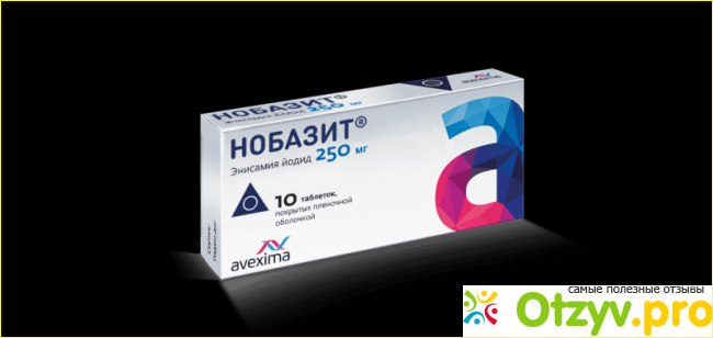 Для начала определимся, что собой позиционирует Нобазит – противовирусное средство, активным веществом является энисамия йодид, дозировка по 250 и 500 мг.