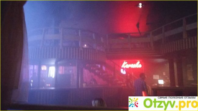Везде стоят столы и очень мягкие диваны, садясь на которые в прямом смысле утопаешь. В помещении не душно. Свет приглушен. Есть зона с барной стойкой, большая танцплощадка со своим диджеем. А также для тех, кто хочет попеть сам имеется караоке клуб.