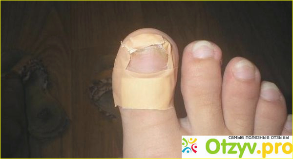 Для начала – мы распариваем ногти. Для этого готовим мыльно-содовый раствор. Не обязательно использовать хозяйственное мыло, стругать его. Я брала самое обычное жидкое мыло, но дорогой фирмы, в составе которого нет вредных веществ. Мало ли, они могли бы навредить и еще больше распространить грибок на кожу. В этой ванночке подержать ноги, если идет речь о грибке ногтей на ноге. Если речь о руках, то тоже самое проделываем с руками – делаем ванночку, примерно 15 минут. Этого хватит, что распарить ногти. Потом втираем средство. Средство само по себе не имеет никакого неприятного запаха. Оно белое, как крем. Сверху клеим пластырь и оставляем его на несколько дней, сколько получится. Желательно – три дня как минимум, а еще лучше – четыре дня. За это время средство глубоко проникнет и подготовит ноготь к спиливанию. Очень легко спилить потом ноготь. А некоторые участки вообще самостоятельно отойдут, вот увидите.