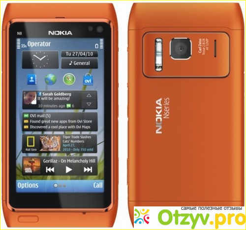 Nokia N8 имеет сенсорный экран и поддерживает много различных программ. Встроенная камера на двенадцать мегопикселей, снимает качественно и без каких либо проблем. В целом очень хороший и удобный телефон. Я им пользуюсь достаточно давно и у меня нет желания менять его на другой.
