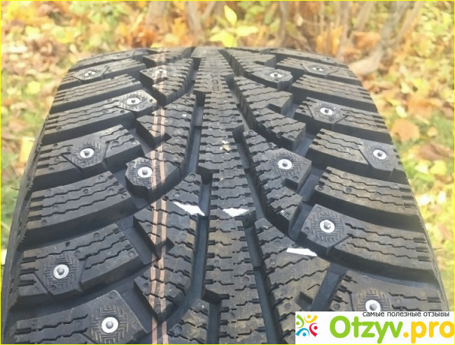 Сцепление этой резины с дорогой поражает. Теперь даже жена не боится садиться за руль в метель, или гололёд. Шипы не выпадают (по крайней мере пока ) Протектор очень хорош, прослужит долго.