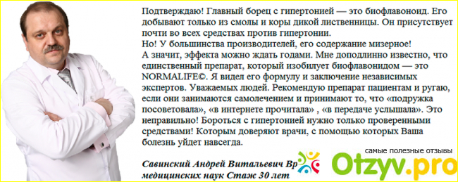 В интернете много откликов о Normalife, к сожалению встречаются и негативные. Но в целом люди пишут о реальном облегчении после приема. Конечно, если постоянное давление высокое уже долгие годы, то снижать его порой даже опасно и нужно делать это только под контролем врача, но если в целом давление опускается до границ нормы, но при этом часто колеблется, то в данном случае препарат просто незаменим. Врачи высказывают мнение об ингредиентах, которые, по их мнению, являются органично подобранными для борьбы с артериальным давлением. Многие отмечают особенную пользу биофлавоноидов, которые воздействуют на артериальные перепады давления. Также специалисты выделяют мягкость снижения давления, что действует на организм оберегающее.