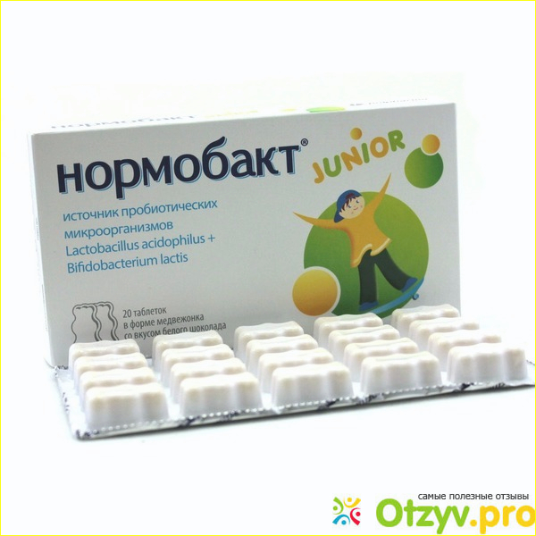 Однажды и я столкнулась с этим препаратом и это было перед новым годом. Мой 3-х летний сын заболел ангиной, естественно была температура, лечение, в которое входил антибиотик, и принимать его было просто необходимо. Мне никто не сказал в детской консультации что вместе с антибиотиком нужно принимать и препарат, который будет защищать кишечник от воздействий этого же антибиотика. Я об этом вспомнила сама только на второй день и приобрела в аптеке Нормобакт, для деток старше трёх лет он выпускается в форме медвежат, такие себе мини-шоколадки, имеющие вкус молочного шоколада. А для деток из 6 месяцев препарат сделан в виде порошка, который нужно специально разводить и давать ребёнку. Так как у моего мальчика возраст позволяет, тот я ему купила эти медмежонки, и поэтому проблем с приёмом препарата не было совсем. В одной упаковке сразу 20 таблеток в одной пластине идёт. Принимал сын по 2 раза в день препарат и на протяжении 10 дней. Никаких проблем со стулом или вообще расстройства пищеварения не было.