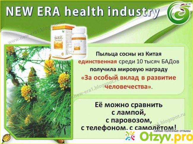 Цена Сосновой пыльцы в компании Новая Эра — 990 рублей. В баночке 108 таблеток по 0,5 г. Для поддержания хорошего самочувствия достаточно пить по 3 таблетки 2 раза в день за 30 мин. до еды. Для того, чтобы запустить механизм омоложения необходимо пить по 10 таблеток 3 раза в день до еды. При болезненных состояниях начинать прием постепенно — с 6 таблеток в день, постоянно наблюдая за реакцией организма, постепенно увеличивая количество таблеток : 6-9-12-18 и т. д