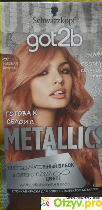 Покупала в гипермаркете Okeй за 399 рублей. Давно уже к ней присматривалась, но не решалась к переменам, поэтому на протяжении долгого времени хранила верность проверенной годами краске. А тут, толи хмурая погода за окном сыграла свою роль, толи душа настроилась на перемены, не заметила, как руки сами понесли яркую упаковку на кассу. Начну с того, что упаковка действительно притягивает к себе взгляд, такая яркая, запоминающаяся. Производитель обещает сногшибательный металлический блеск и суперстойкий цвет, то что надо в хмурую осеннюю погоду!
