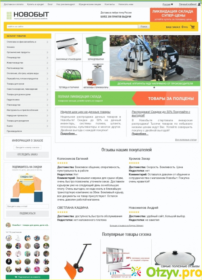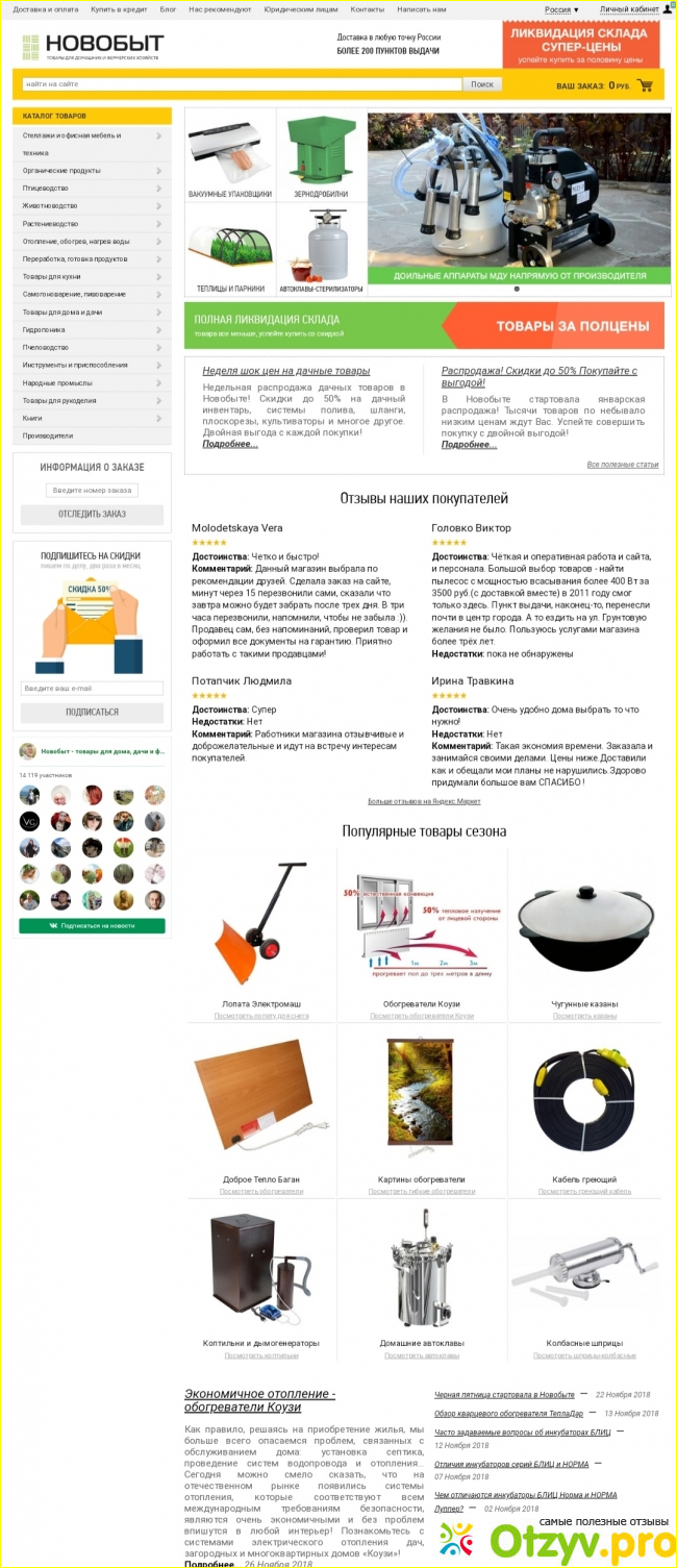 По сути, Новобыт-это интернет-магазин сельскозояйственных товаров и сопутствующих им товаров, таких как книги по животноводству и пр. Насколько мне известно помимо интернет площадки в некоторых городах даже имеются магазины Новобыт, но это не точно. Отзывы на самом сайте положительные, а на сторонних ресурсах находились только отрицательные отзывы. Но, блин, нас отрицательные отзывы не остановили и мы таки сделали заказ.
