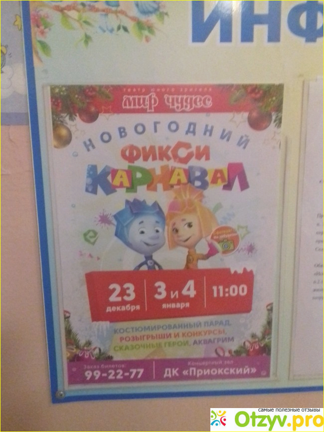Звонок в ДК Приокский, всё мне рассказали и сказали что билеты могут доставить. Доставка входила в сумму билетов., и с завтрашнего дня начинается развоз. Я уточнила могу ли сопровождать ребёнка до 3 лет бесплатно, девушка оператор меня уверила что да. Прежде чем везти билеты нам позвонят и уточнят. Я отменила свои планы и стала ожидать звонка. Не позвонили и не доставили. Я уже стала сомневаться а нужны ли они нам вообще. Много развлечений предлагает город. Позвонив опять меня убедили что доставка будет сегодня, мне позвонят до 18:00. Да в положенное время позвонили и назвали противоположную часть города, точнее в другой район. Извинились сказали что завтра доставят до 12:00. Звонок не последовал, я уж и не думала что будет. Решили что пойдём на другие представления. Ближе к вечеру мне позвонил директор и сказал что едет к нам. Приехав я её переспросила могу ли я сопровождать ребёнка которому нет трех лет бесплатно. Она сказала что нет, стала объяснять. Хорошо что у меня дома оказалось наличными ещё 280 рублей. Наличные дома не храню, всё на картах. Я попросила её чтоб предупредила оператора что нет бесплатного сопровождения. Мне не жалко оплатить себе билет, их не слаженность в работе немного убивает. Долгожданные билеты на руках- сопровождение и билет без подарка стоят 280, а с подарком 500.