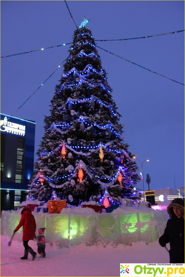 Во-первых, главную ёлку поставили на набережной Урала, такого никогда не было. Красавица переливается тысячами огоньками и кружится. Её низ украшают подсвеченные ангелы во льду.