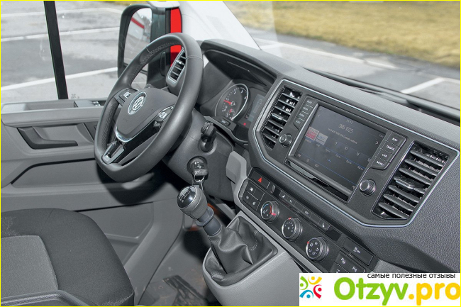 Кстати, рулевое управление происходит не только бортовым компьютером или мультимедийной системой, но и круиз контролем. Кстати, мультимедийка здесь идентична со многими другими марками авто типа микроавтобуса. Рабочее место водителя – это самое святое в машине, она должна быть организована таким способом, чтобы человек ощущали полную гамму комфорта и приятных чувств, когда он находится за рулем. Здесь в Volkswagen Crafter все организовано идеально, я бы даже сказала безупречно: регулирование сидений, настройки рулевого колеса как по высоте, так и по вылету, подлокотник с правой стороны дает возможность снимать напряжение с руки, заботится, чтобы рука просто так не висела в воздухе. Кстати, сиденье опциональное ergoComfort, и создается впечатление, что вы вообще дальнобойщик, так как сиденье полностью амортизируется, регулируется коленный подпор и второй левый подлокотник. Короче говоря, место водителя не вызывает никаких нареканий, там просто можно жизнь прожить, не вставая с места.