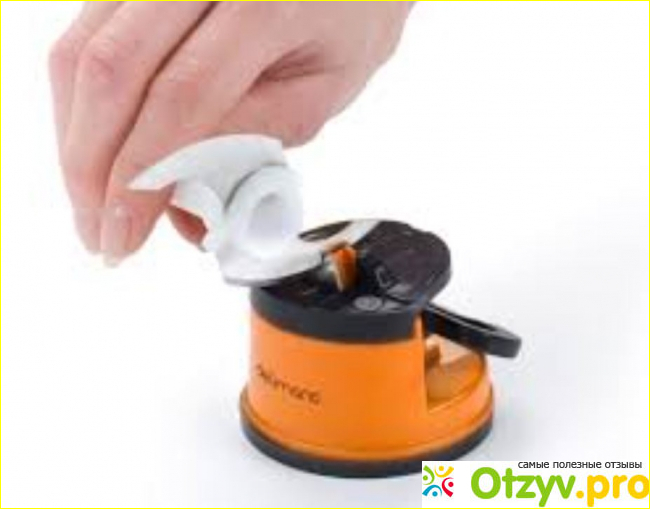 Просто прикрепите точильный камень к кухонной стойке с помощью присоски, которая находится на его нижней стороне. При этом удерживая точильный камень, необходимо нажимать на рычаг, пока он не прикоснется к поверхности. Поместите нож в прибор в начале рукоятки, натяните его на точилку и повторите несколько раз. Шлифовка обычно занимает всего несколько секунд.