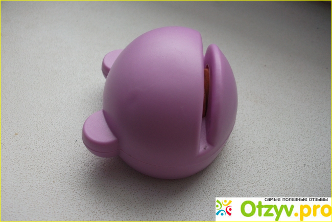 Только следует знать, что результат они дают "на троечку". Качественно такой "точилкой" нож не наточишь, к тому же после такой заточки нож быстро тупится. Преимущества же у них в низкой цене и в том, что для того, чтобы пользоваться ими не нужны абсолютно ни какие навыки. Об одной из таких моделей я и хочу сегодня рассказать. Это ножеточка китайской фирмы, специализирующейся на выпуске бытовой техники ZJMZYM. Подобные выпускают и другие фирмы. Сделана она в виде забавного лягушонка из пластика ABS, имеет размеры 5,8 Х 3,5 см, весит примерно 25 г. В продаже есть лягушки фиолетовые, розовые, синие и зелёные. Во рту "лягушонка" скрыт рабочий орган: камень с вырезом, установленным под углом и имеющий сходящиеся к основанию плоскости. Он рассчитан так, что при протягивании лезвия оно автоматически затачивается под нужным углом.