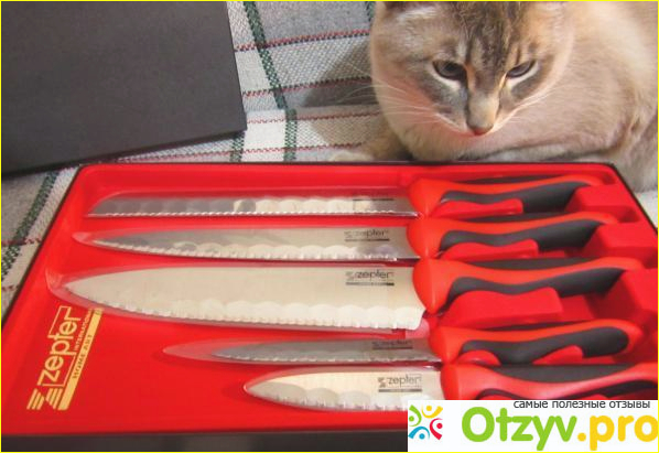 Но ножи меня заинтересовали, это особая категория. Слышала, что ножи от этой компании сделаны из какой - то качественной стали, и они не тупятся даже. Но главное - у них режущая поверхность - фигурная, так что при случайном соскальзывании ножа невозможно получить травму.