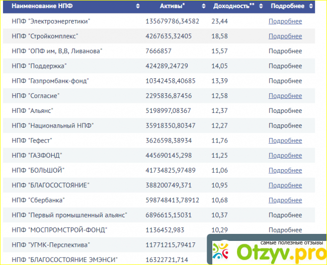 Вот список самых доходных пенсионных фондов в 2018 году:
