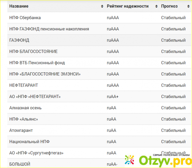 А вот текущий рейтинг надежности негосударственных пенсионных фондов: