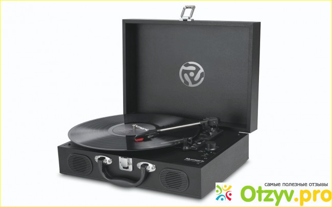 3-хскоростной (33 1/3, 45 и 78 RPM) портативный виниловый проигрыватель в форме кейса;