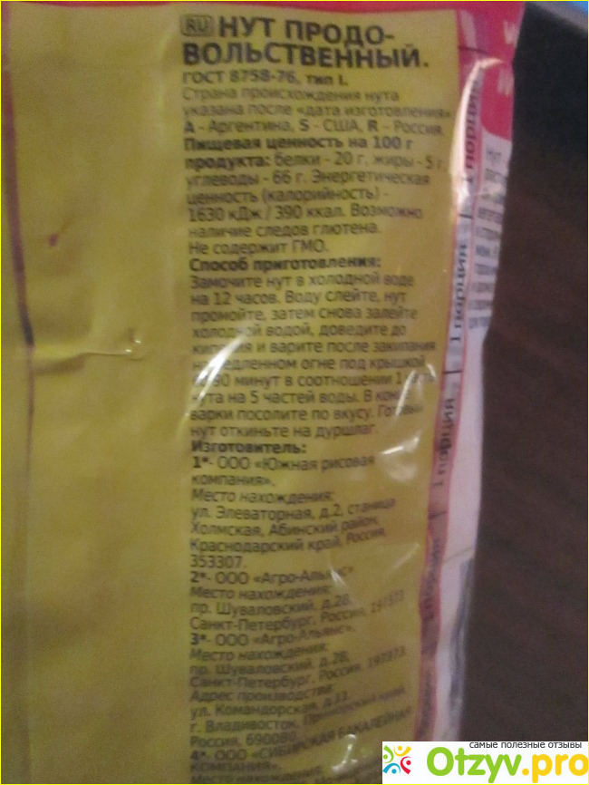 Интересно, что сделано по ГОСТу! Я и не знал про ГОСТы на нут. Выращен в России, что тоже любопытно, не знал что у нас стали его выращивать.