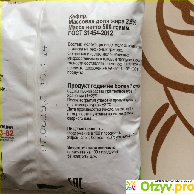 Производитель оставил необходимую информацию на пакете, с которой при необходимости можно без труда знакомиться. В информация входит в первую очередь состав, который совершенно идеален и максимально полезен для здоровья организма. В него входит лишь закваска, которая делают продукт полезным. Также необходимо ознакомиться со сроками хранения, которые равны всего семи дням, правилами хранения и контактной формацией от производителя.