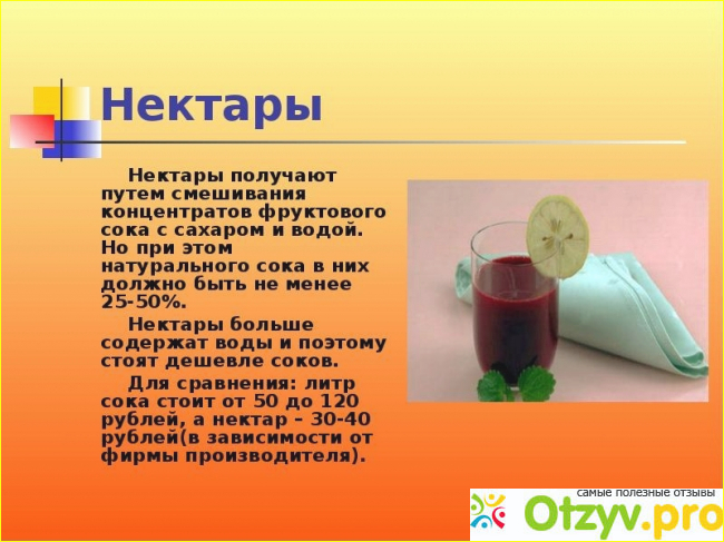 Сейчас часто на полках супермаркетов можно встретить соковые напитки. Это продукция, в составе которой всего лишь 10% натурального сока.