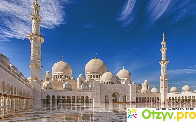 Мечеть Шейха Зайеда - самая большая мечеть в Объединенных Арабских Эмиратах и одна из самых красивых мечетей в мире, известная своей великолепной архитектурой, мрамором, золотом и богато украшенными люстрами. В мечети могут разместиться 40 000 верующих. В мечети есть 82 купола, самый большой в мире коврик ручной работы, большая библиотека с редкой коллекцией и окружена красивыми отражающими бассейнами. Эта мечеть уникальна тем, что она открыта ежедневно для посетителей, за исключением пятничного утра, которое предназначено для поклонения. Время посещения - с 9:00 до 10 вечера с субботы по четверг и с 16:30 до 10 вечера в пятницу. Для посещения этого места необходима специальная одежда.