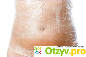 Обертывать живот следует обычной пищевой пленкой, она продается в любом хозяйственном магазине. Обертывание нужно начинать снизу, не оставляя ни миллиметра свободной площади. Заканчивать под грудью, такой способ не даст пленке съежиться и съехать вниз.
