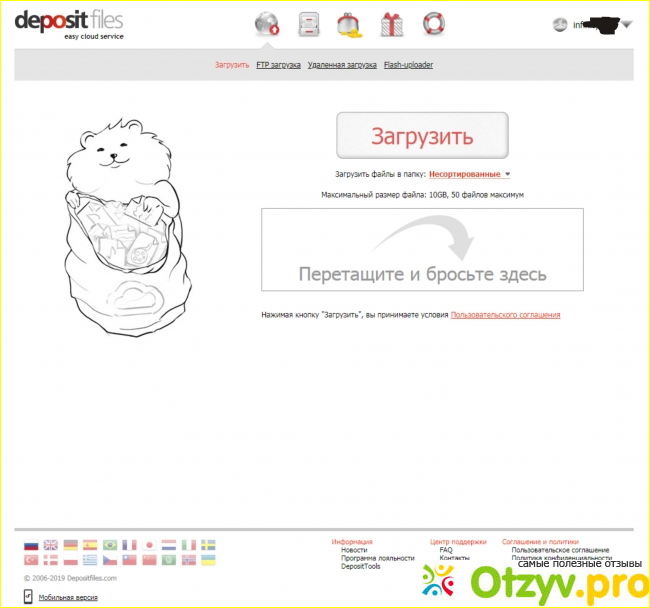 Интерфейс сайта предельно прост и понятен. Загрузить файл любого типа можно на прямую, с другого сайта, по ftp. Своя программа Depositfiles Uploader действует как менеджер удалённой загрузки по протоколу ftp и немного не удобная. Скорость загрузки максимальная. А вот скорость отдачи будет зависеть от того, какой тариф вы возьмёте. В бесплатном режиме есть ожидание в 60 секунд и просмотр рекламы с капчей.