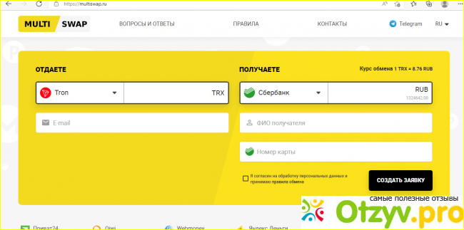 При переводе криптовалют на его реквизиты на обмен, на твой счет ничего не приходит, как должно было бы быть в случае обмена. Данные сайты рекламируются в телеграм: обмены P2P.
