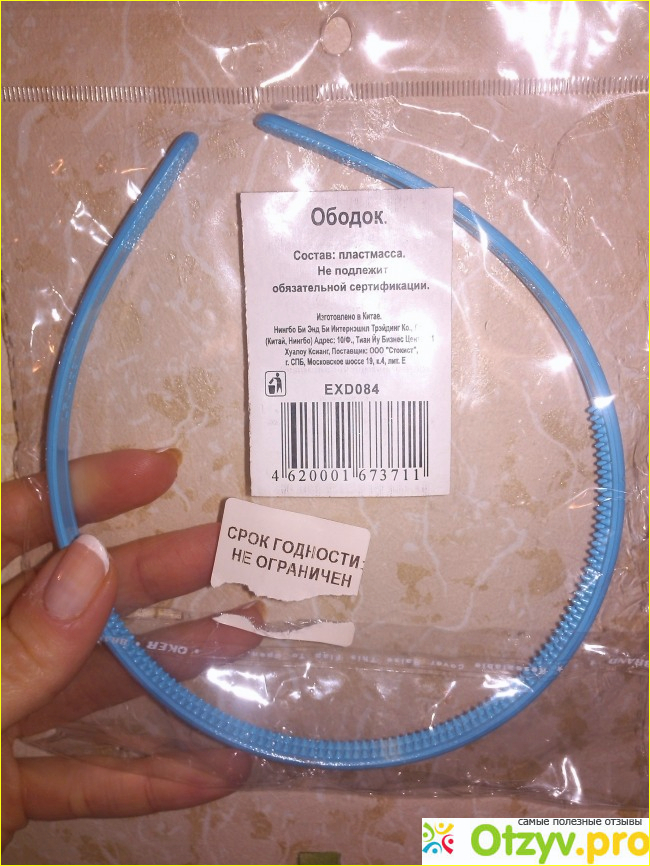 Изготовлен ободок для волос в Поднебесной. Предприятие-изготовитель называется Нингбо Би Энд Би Интернэшнл Трэйдинг Ко. Указан был даже подробный адрес предприятия-изготовителя.