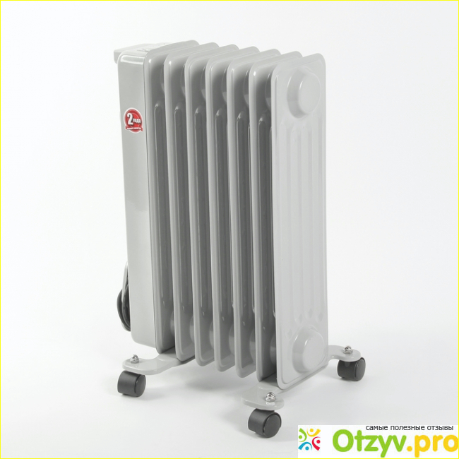 У него семь секций, благодаря чему обогревает большую площадь, чем трех-четырехсекционные приборы. Также прибор полностью безопасен, надежен, прочен, добротная сборка, высококачественные используемые материалы и комплектующие. Защищен автоматической функцией от перегревания, от превышения температуры, поэтому его можно ставить даже в детские комнаты.