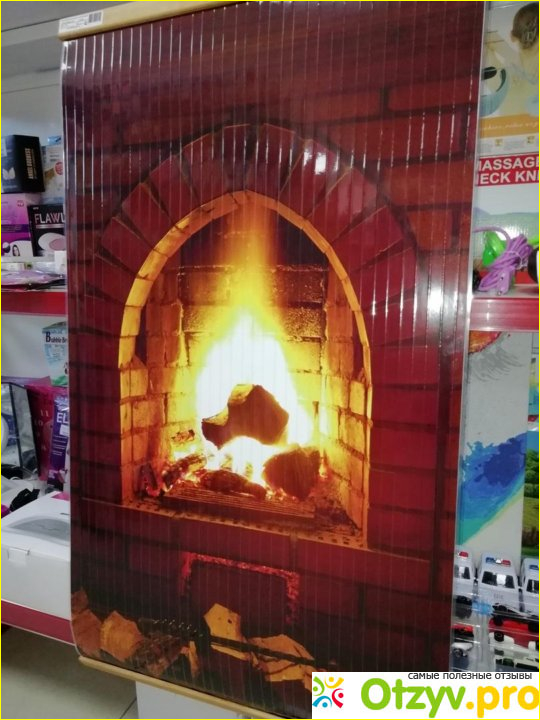 Увидели этот обогреватель в магазине. Изначально, даже не поняли, что это такое. Решили, просто глянцевая картинка, которую можно повесить на стену, и она будет придавать уюта комнате. Но нет, оказалось, это обогреватель. Выбрали с картиной камина. Но можно посмотреть и прочие изображения, есть деревья, животные, города. В общем, выбор рисунков на самом деле довольно большой.