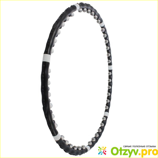 Особенностью этой модели являются специальные шарики, которые встроены в каждую секцию обруча. Всего по всей длине насчитывается 40 таких шариков. Это сделано для того. чтобы усилить эффект от кручения обруча. Таким образом, когда человек крутит обруч с массажными шариками, то зона в области живота получает дополнительный массаж. А благодаря этому человек якобы должен быстрее худеть в данной области. Сам же обруч выполнен из полипропилена. Диаметр данный модели составляет 98 см. А его вес идет чуть больше одного килограмма.