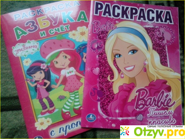 Одна раскраска Азбука и счет с прописями с героями мультика Земляничка и Раскраска Барби Пишем красиво. У нас варианты для девочек, но есть раскраски и чисто для мальчиков с героями мультиков про машины и роботов.