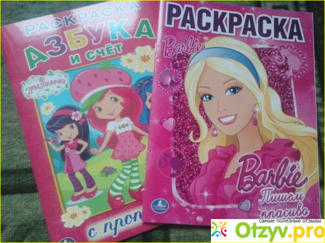 Раскраски совершенно недорогие, одна за 32 рубля с контурами военной техники, другая о кукле Барби стоит 40 рублей. Понятно, кому какая раскраска досталась. Кроме подсказок для рисования имеются и некоторые прописи, пояснения. Ребенок постепенно учится не только рисовать, но и писать.