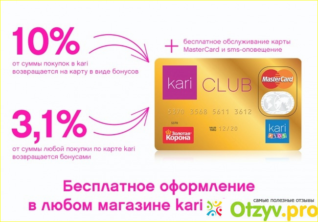 По всей России таких магазинов огромное множество. Только в Нижнем Новгороде и области насчитывается 10 магазинов кари. Специализируется магазин на женской, мужской и детской обуви. Выбор обуви огромный есть даже в этом магазине марки обуви такие как Pierre Cardin и Alessio Nesca. Обувь есть как из натуральных материалов, так и из искусственных. Женский модельный ряд на любой вкус и цвет, от высоких, до низких. Открытые, закрытые, спортивного стиля. Мужской модельный ряд тоже велик на любой вкус. От классики до спортивного стиля, тоже также есть как из натуральных материалов, так и из искусственных. Вот что меня умиляет, так это детский модельный ряд. Я, с появлением дочки всегда во всех магазинах смотрю детскую обувь. В кари ну просто огромный выбор детской обуви, каких разновидностей по моделям только нет. И сандалики с ортопедической стелькой (натуральные, искусственные), ботиночки на осень, весну на байке, сапожки зимние, ботинки зимние, кроссовки - каких цветов только нет. И самое главное размеры от самых маленьких. По качеству обувь очень даже не плохая. Цены тоже приемлемые. Зайдя в данный магазин, можно купить обувь на всю семью. А еще в магазине бывают акции, скидки на покупку двух, трех пар. Можно даже попасть на такую акцию, что третья пара в подарок. Очень хороший бонус для семьи. Так же в магазинах Кари действует бонусная карта. На нее копятся балы и потом этими баллами можно расплачиваться при покупке. То есть какой то процент от суммы вы можете оплатить бонусами с карты. Так же при оплате картой Сбербанк можно расплачиваться СПАСИБками, и на карту так же начисляются СПАСИБки. Это очень выгодно. Еще в данную сеть магазинов входит сеть детских магазинов Кари Кидс. Сеть одна, карта бонусная тоже одна, я это к чему. Можно ребенку купить что-нибудь в детском отделе и расплатиться этими же бонусами. Так мы покупали дочке мотоцикл 2500 рублей, в итоге он нам обошелся в 1999 рублей со списанными бонусами. Выгода в 500 рублей, пусть не большая но все же приятно. У магазина Кари есть интернет-магазин ( в котором можно просмотреть весь модельный ряд женской, мужской, детской обуви. Можно посмотреть есть ли интересующий размер, и если есть то в каком магазине территориально по городу. Это очень удобно, чтобы не ездить по всему городу, едешь в конкретный магазин и берешь то что тебе понравилось.