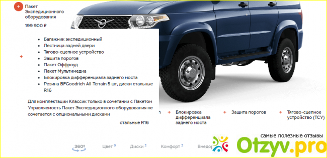 Ко всем вверху указанным достижениям прибавим двигатель ZMZ PRO, мощность 150 лошадиных сил, пакет управляемости. Сумма от 784000. Цифра может увеличится за счёт экспедиционного оборудования. Чтобы его не расписывать во всей красе - прилагаю фото.